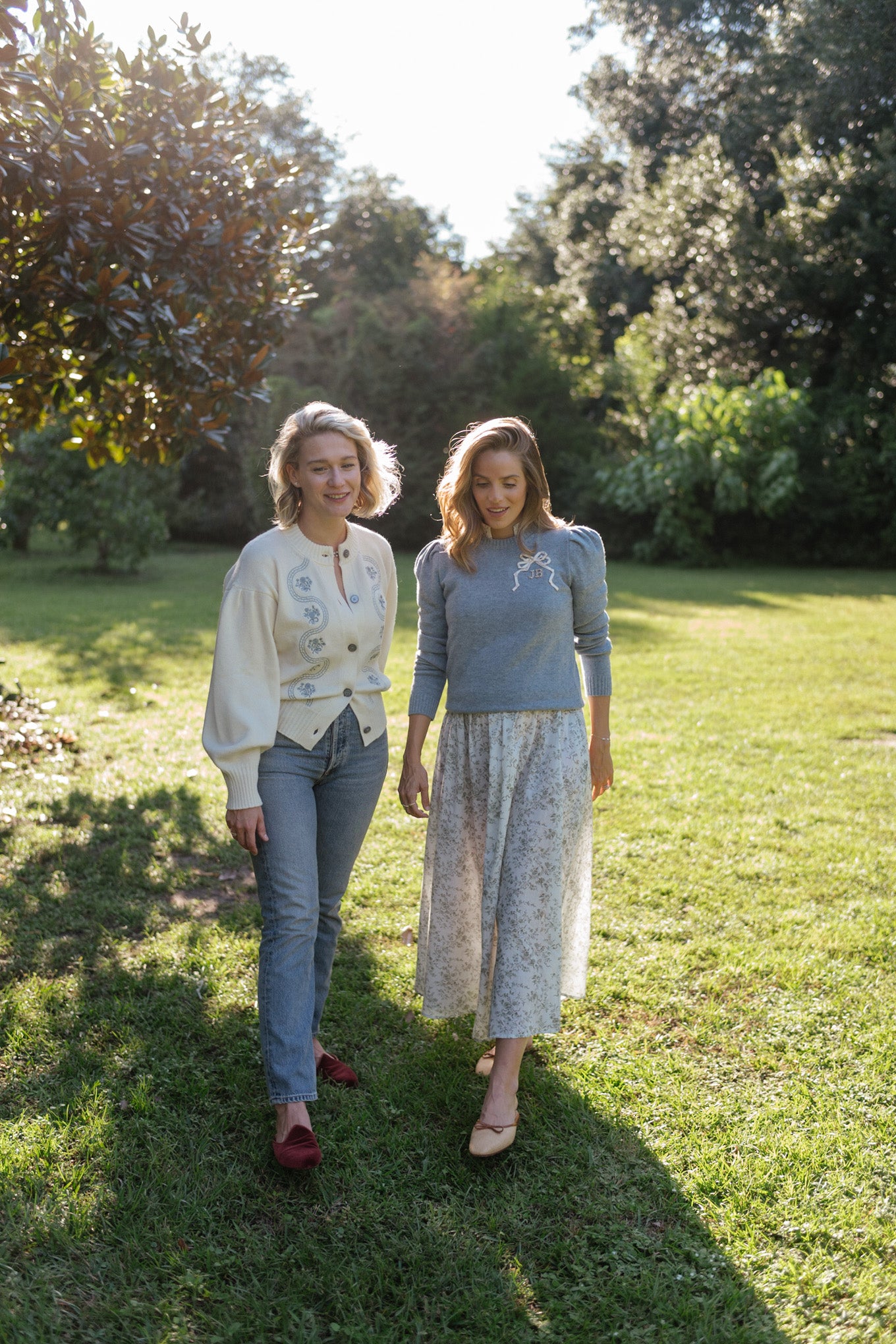 Bringing together our love of thoughtful, beautiful details, Parterre has partnered with Le Lion to create a limited edition knitwear collection that embodies the nostalgia and whimsy of both brands. The collection takes illustrative elements from the prints of Parterre and transforms them into luxurious embroidered knits, with the added touch of sparkle and personalization we love and expect from Le Lion.