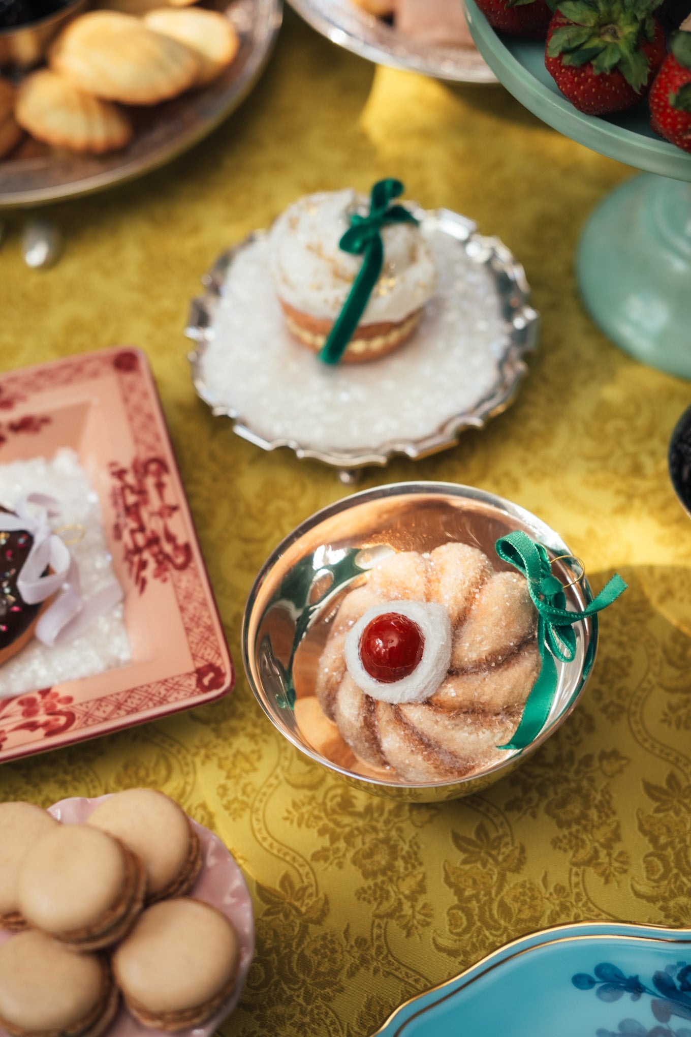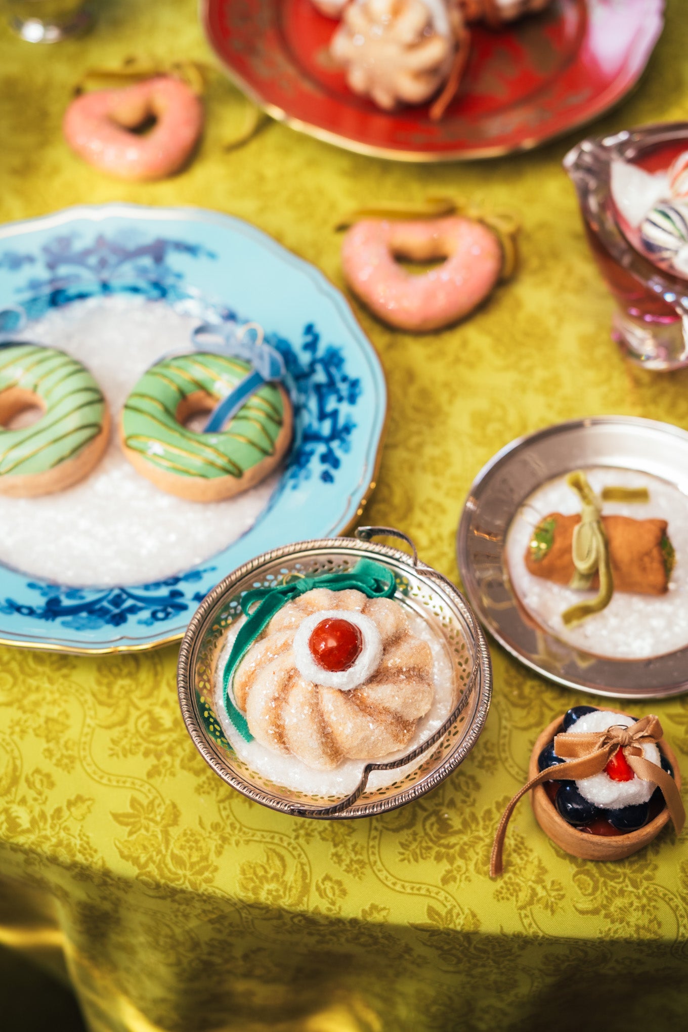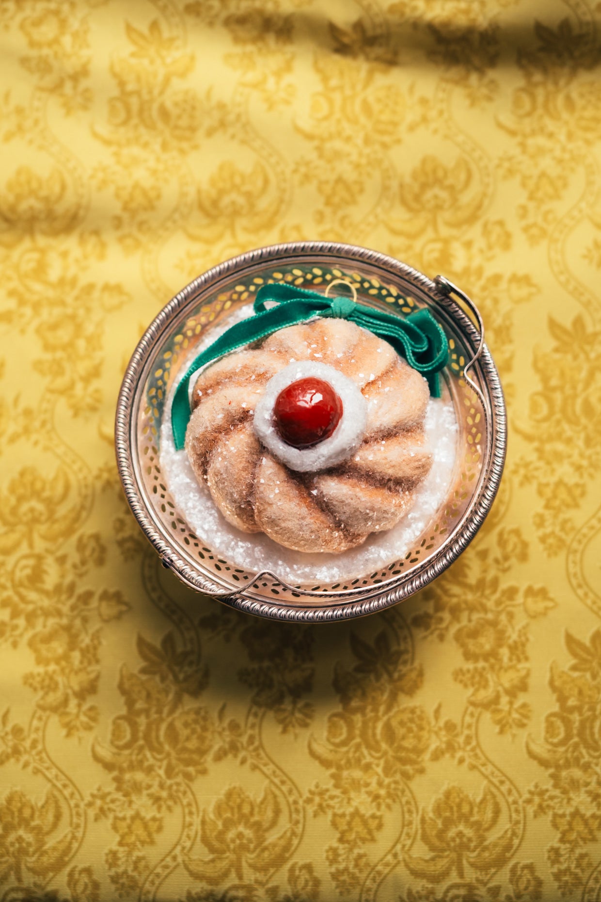 This stunning collection of bonbons and holiday treats are each painted, glossed and glittered by hand. Finished with an Italian velvet ribbon.