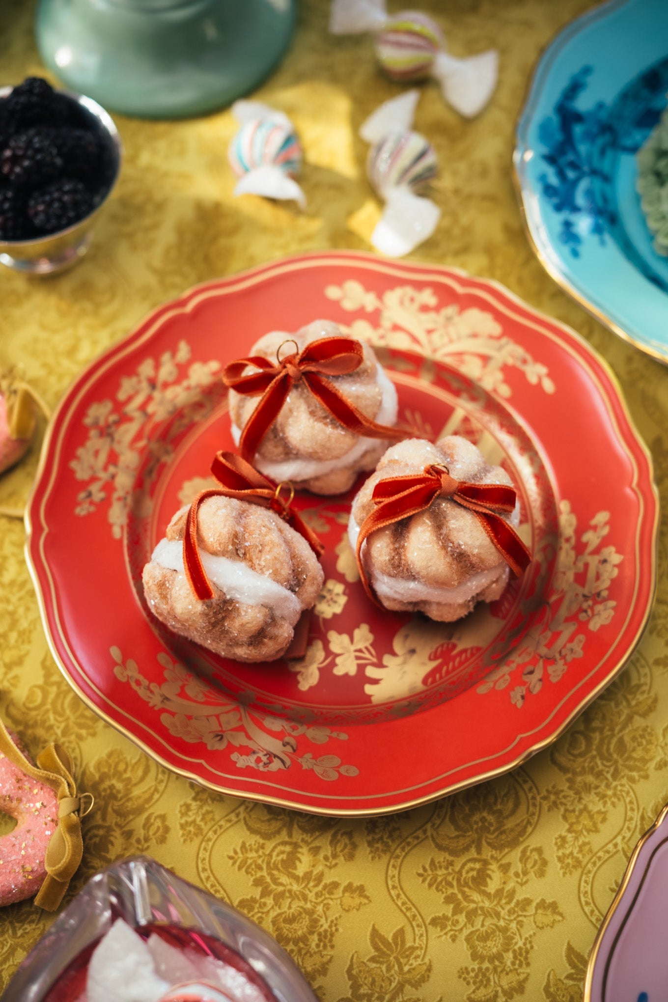 This stunning collection of bonbons and holiday treats are each painted, glossed and glittered by hand. Finished with an Italian velvet ribbon.