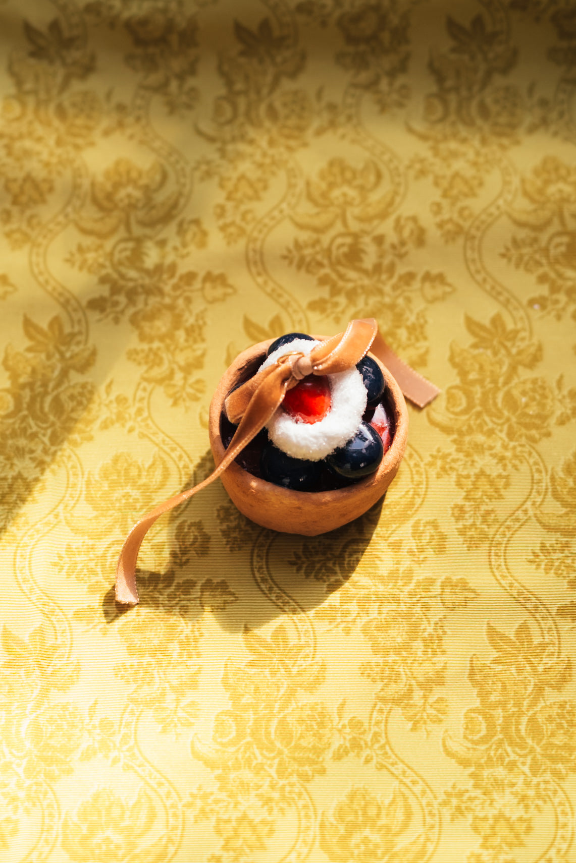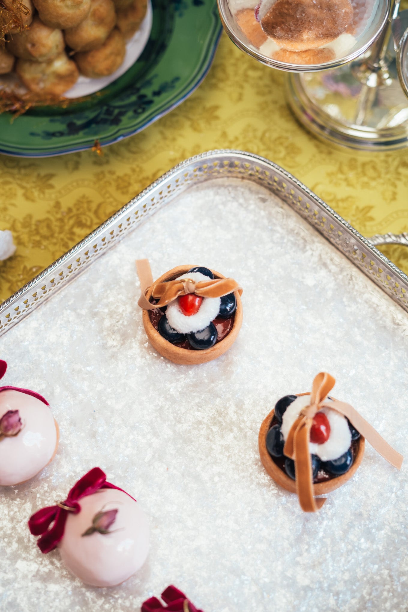 This stunning collection of bonbons and holiday treats are each painted, glossed and glittered by hand. Finished with an Italian velvet ribbon.
