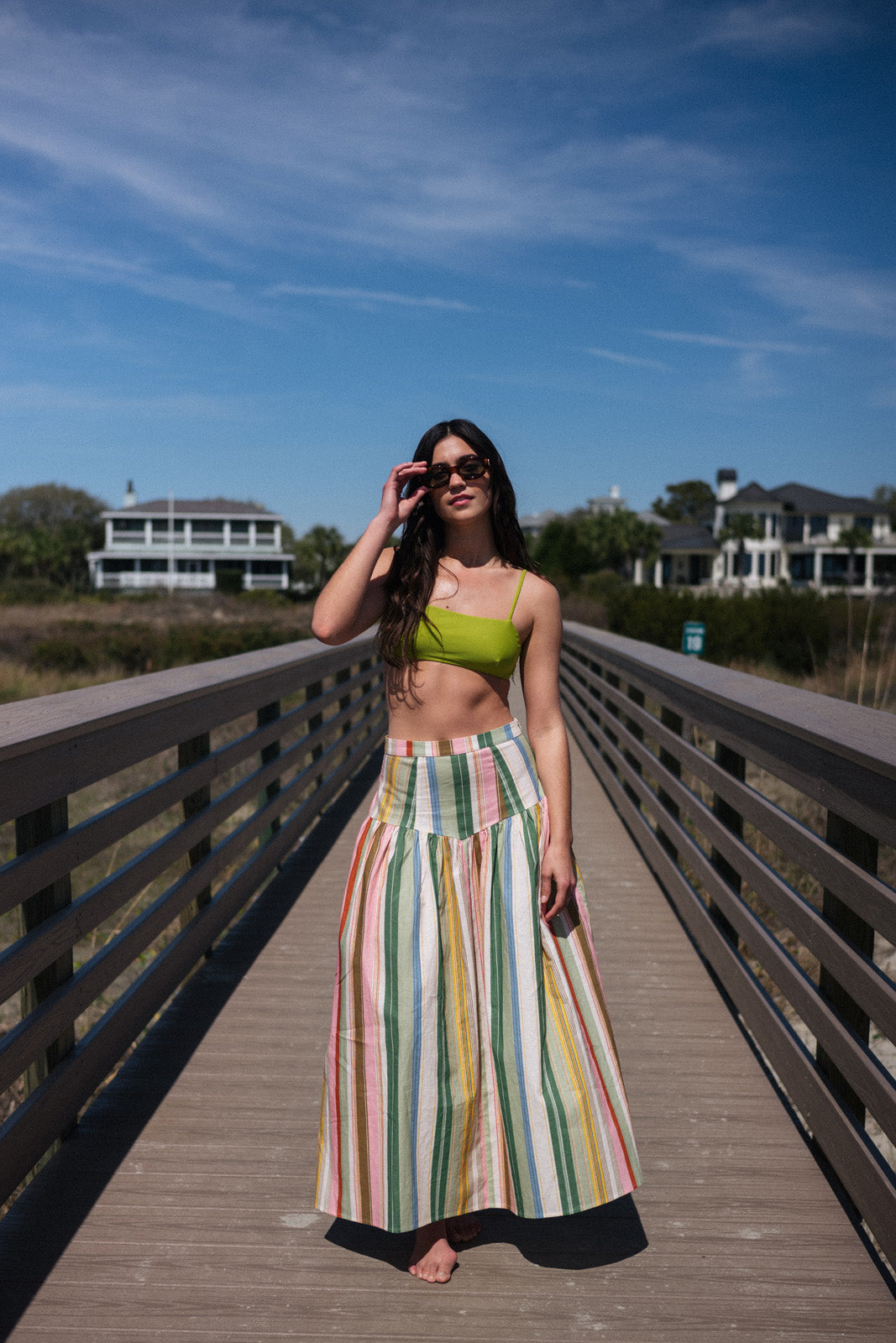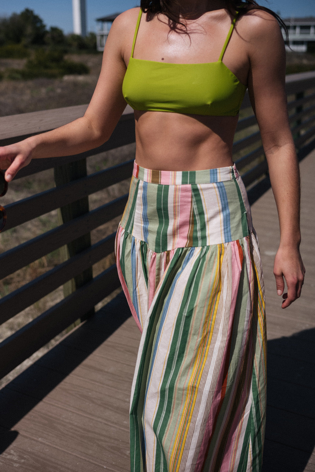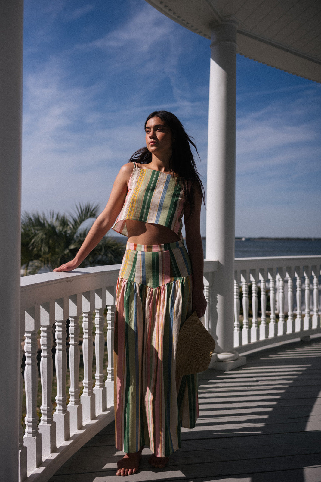 Shown here in Dolce Stripe in Iridian, our Hattie Top completes this set.