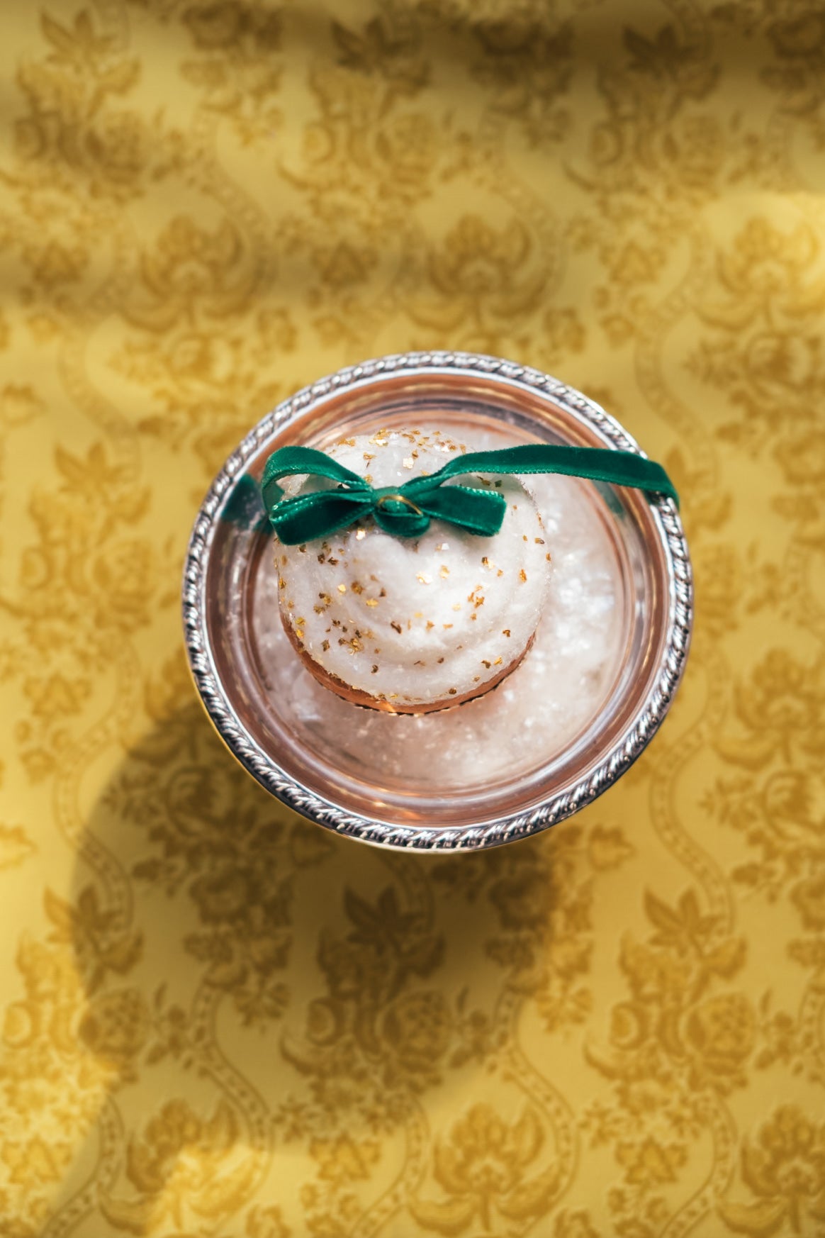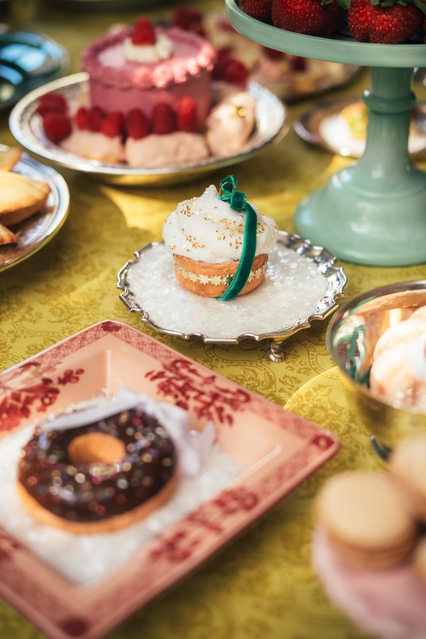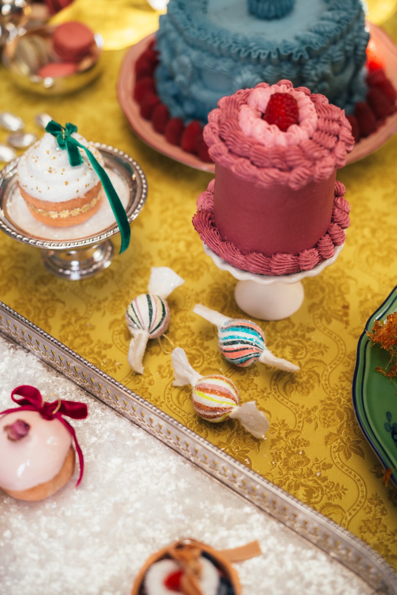 This stunning collection of bonbons and holiday treats are each painted, glossed and glittered by hand. Finished with an Italian velvet ribbon.
