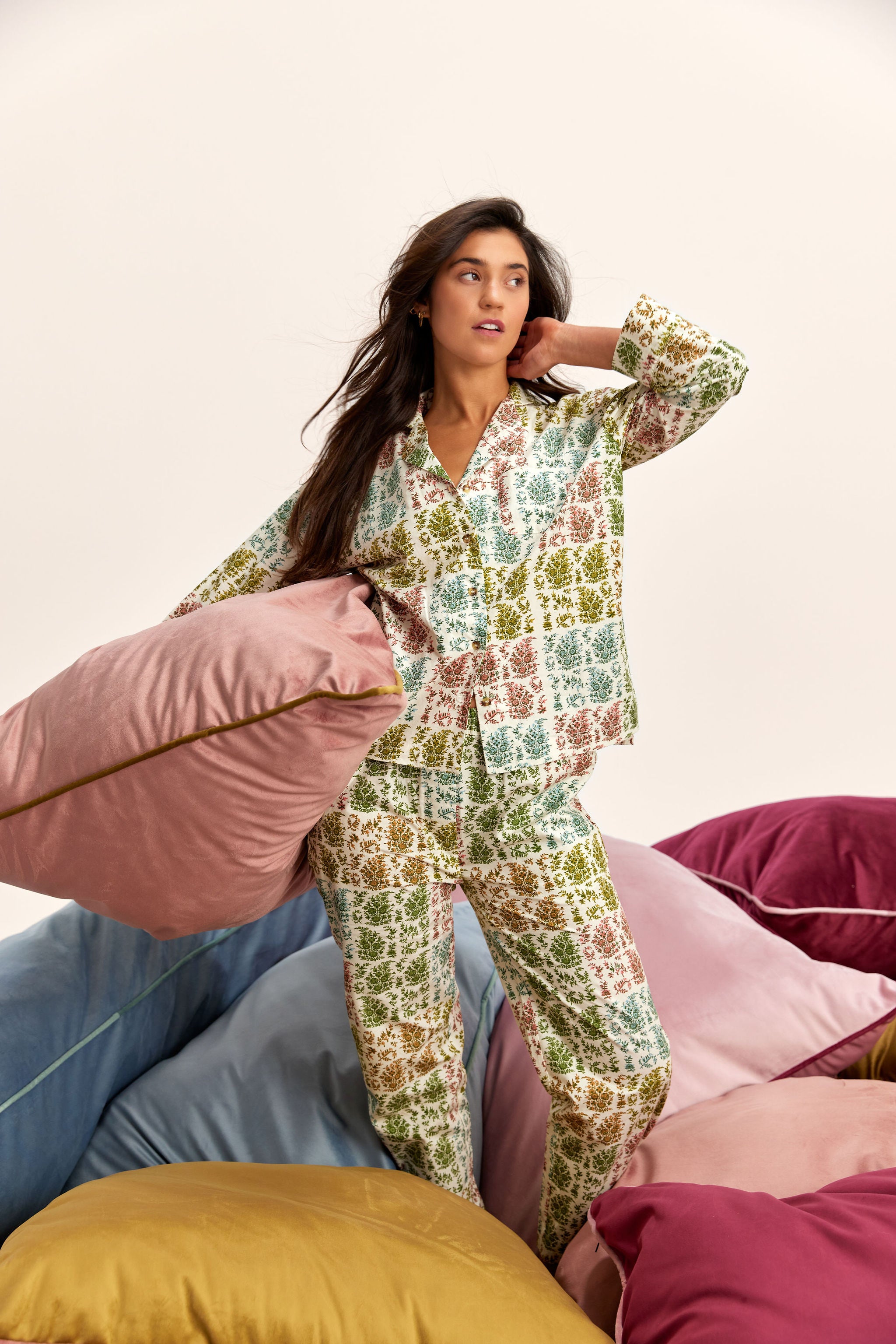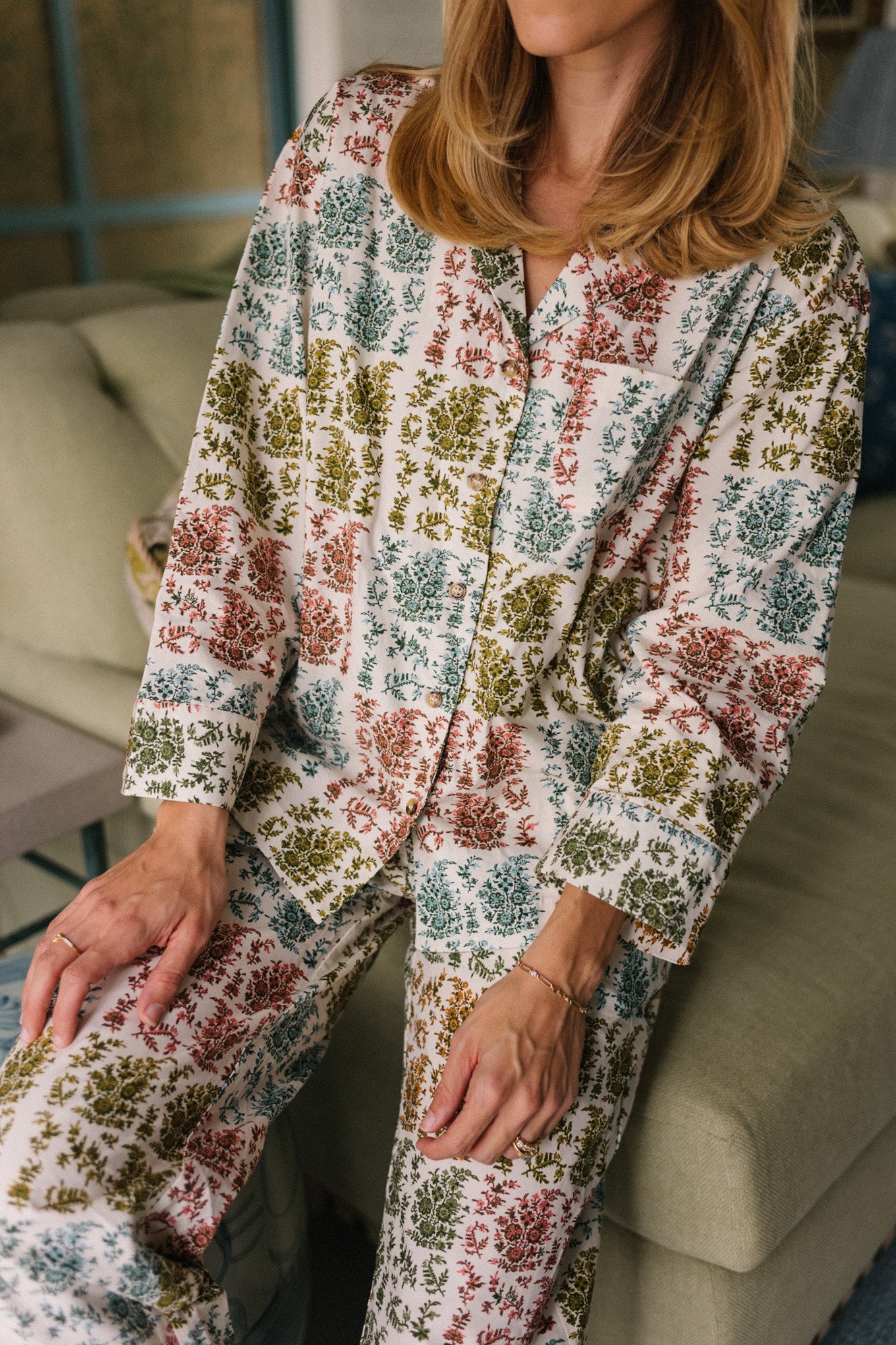 Made in a crisp organic cotton poplin, the Parterre Pajama is a classic sleep set with a fresh cut and comfortable fit. The top features a notched collar, 3/4 length sleeves, a petite breast pocket, and tortoise buttons. The bottoms feature a straight leg, slightly cropped length and a pull-on elastic waist.