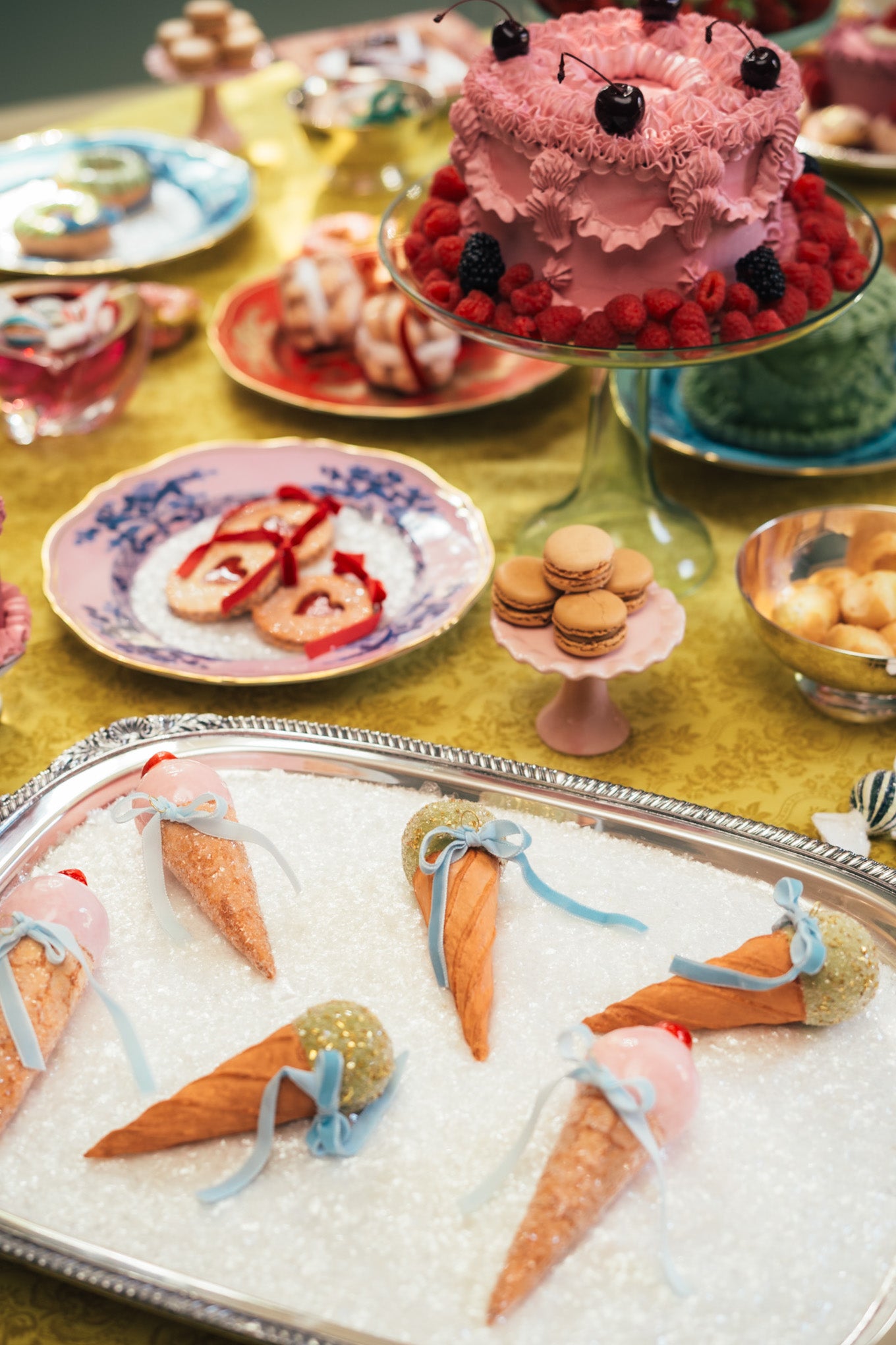 This stunning collection of bonbons and holiday treats are each painted, glossed and glittered by hand. Finished with an Italian velvet ribbon.