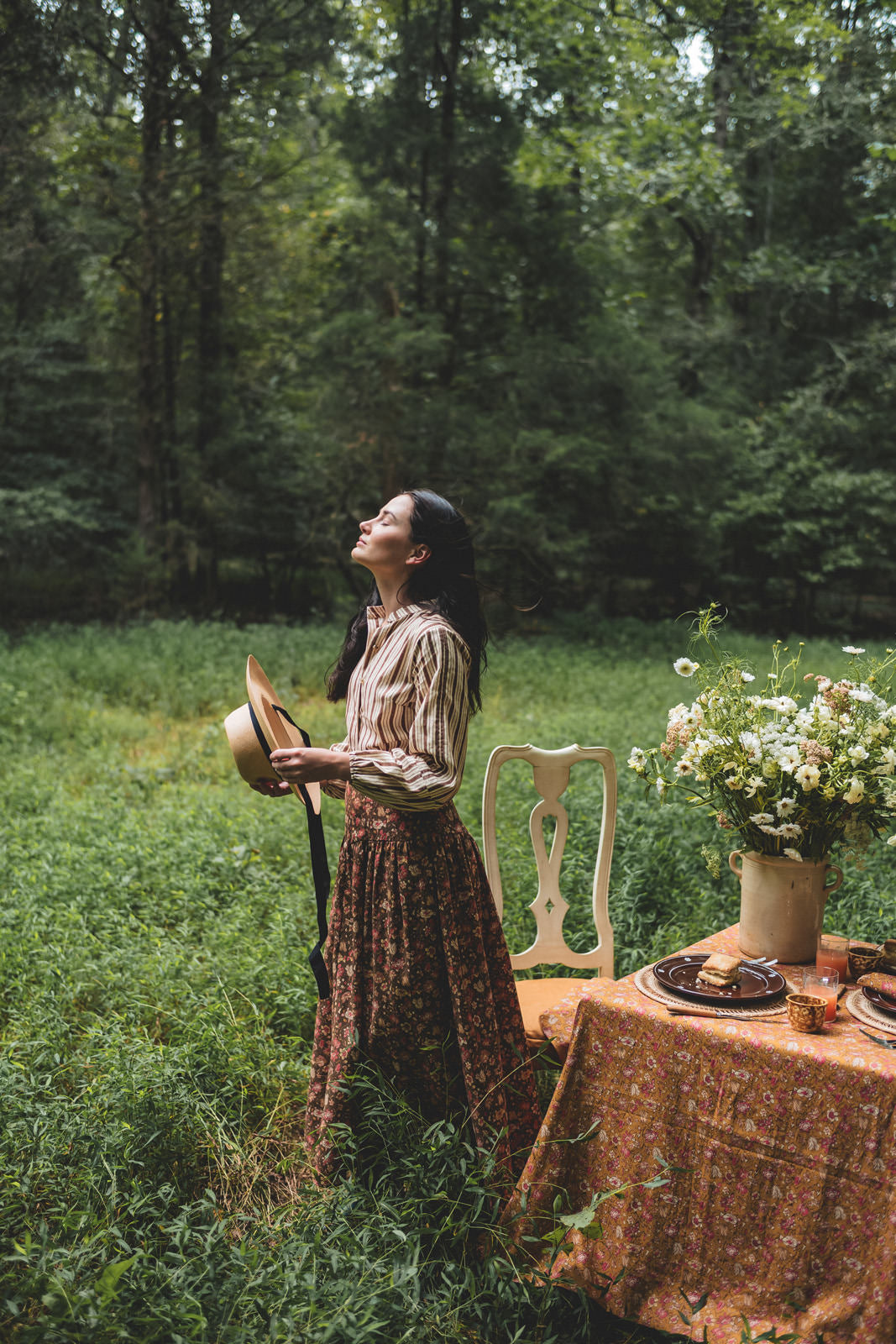 Covered in our Marigold Daphne print, our linen printed tablecloth sets a beautiful all season backdrop. Set the table with the corresponding napkins.