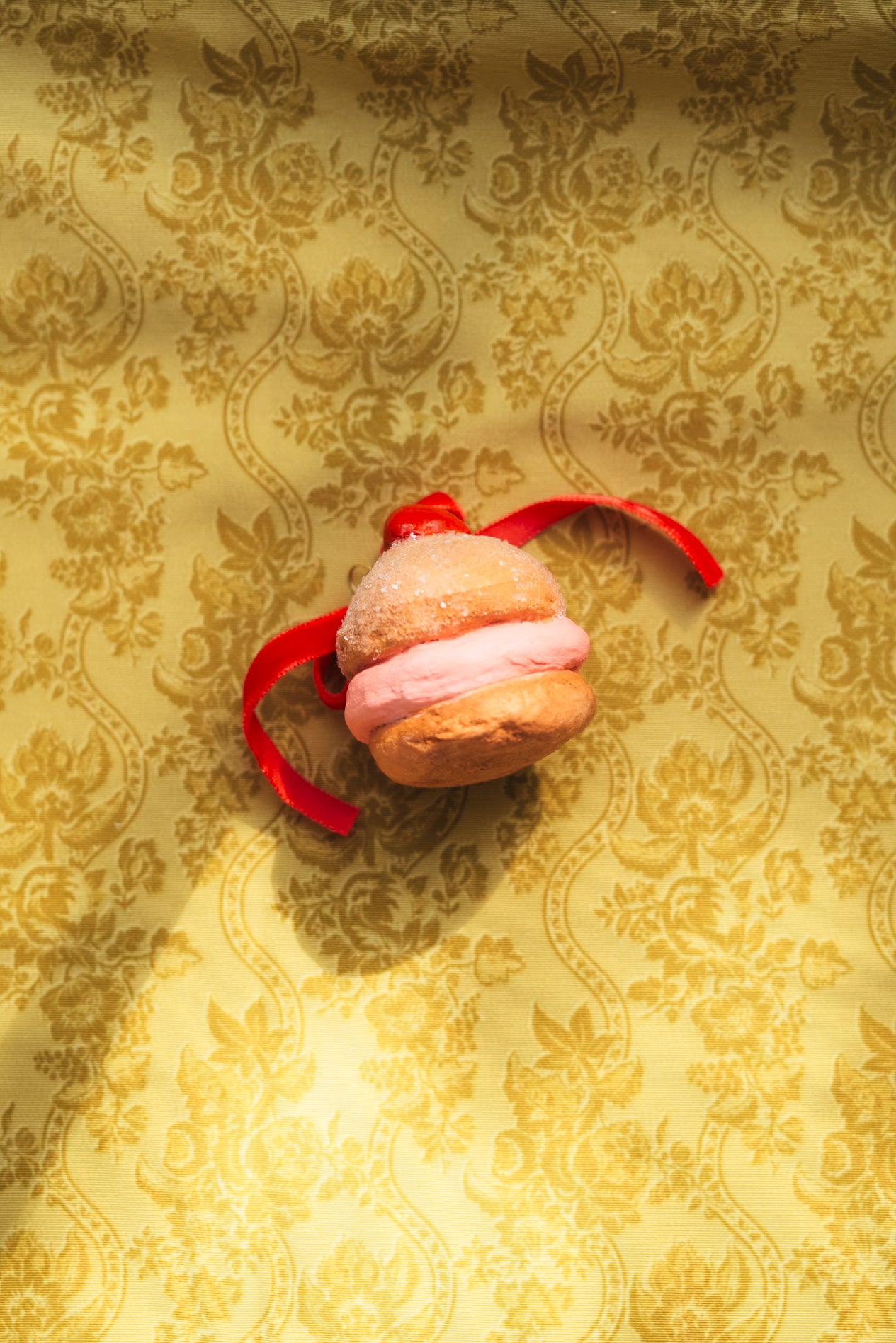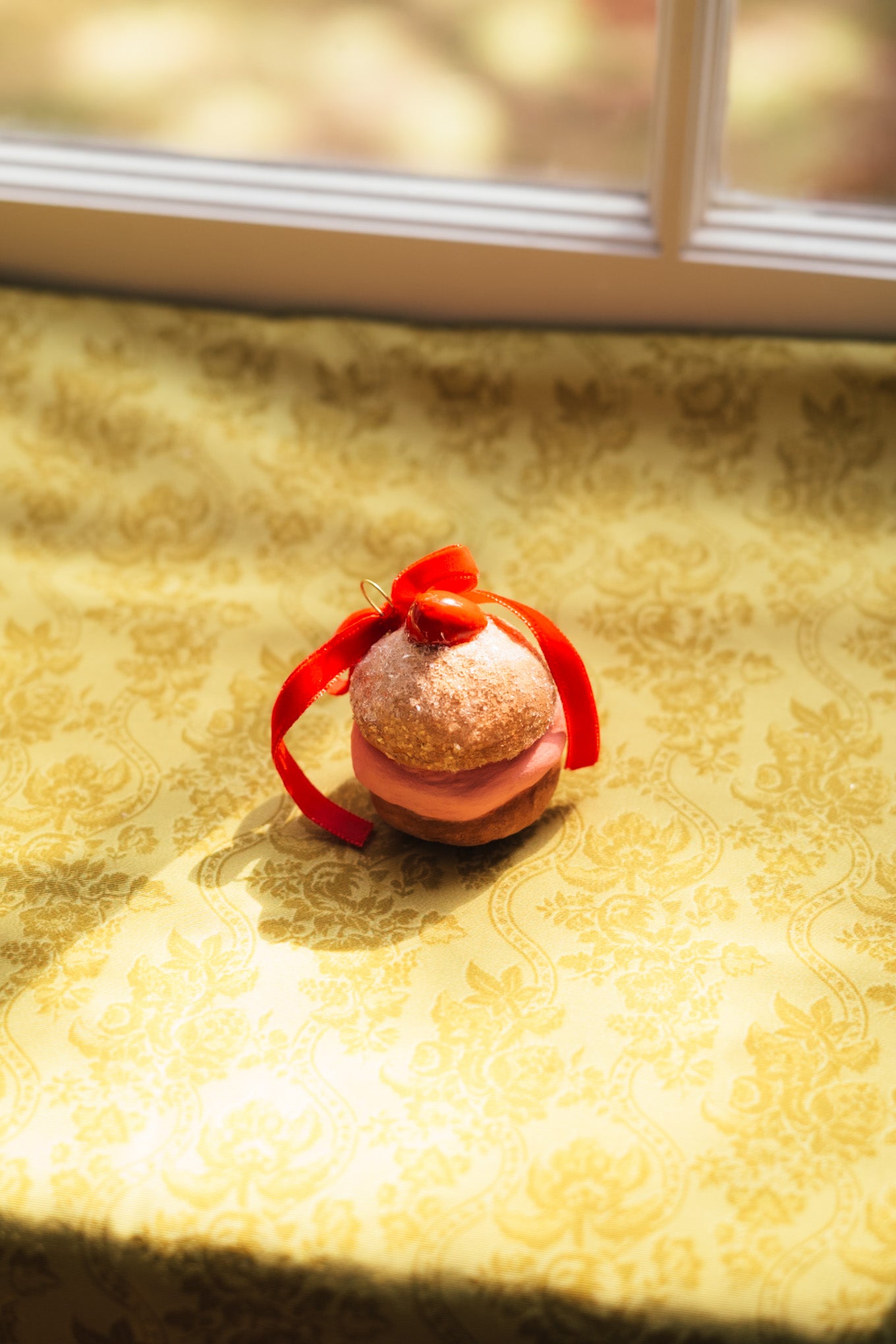 This stunning collection of bonbons and holiday treats are each painted, glossed and glittered by hand. Finished with an Italian velvet ribbon.