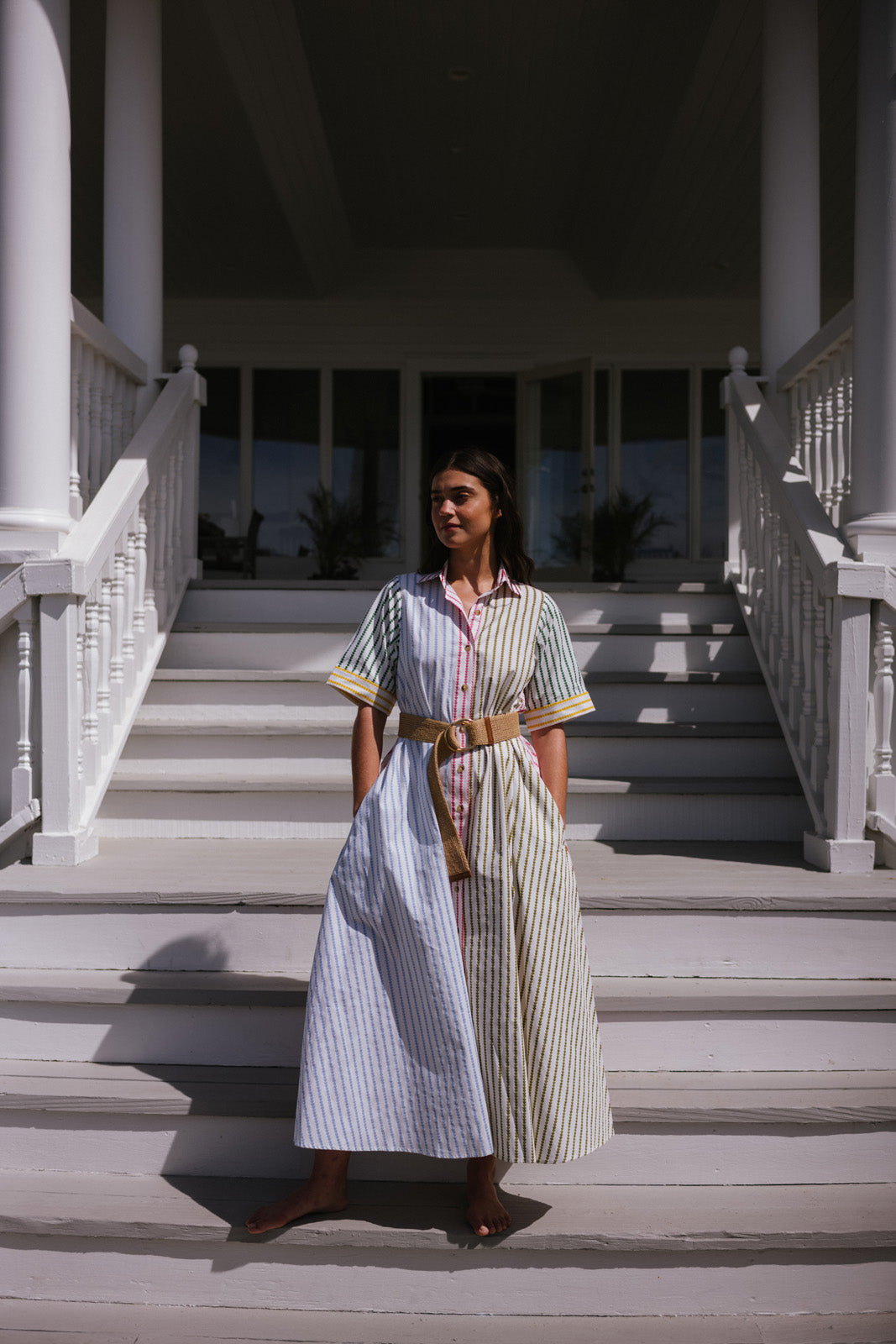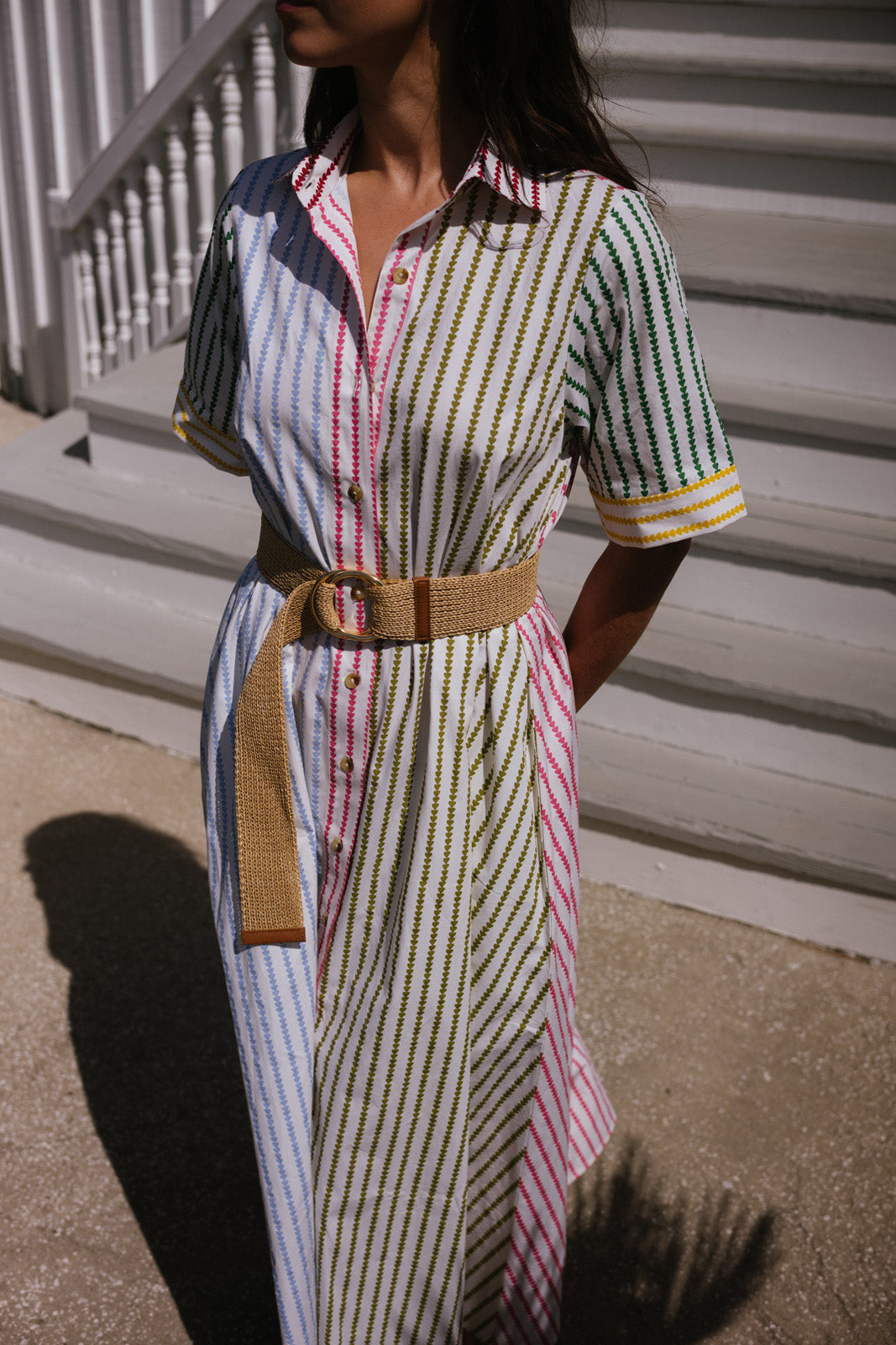 Structured and feminine, the Vera dress makes the most of everyday elegance in a folk-art inspired multi-hued stripe.
